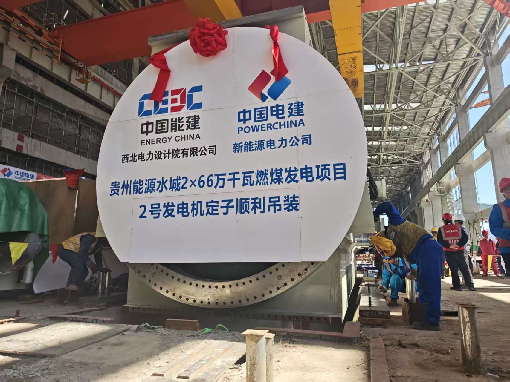 本網訊 4月3日,貴州能源水城2×66萬千瓦燃煤發電項目2號機組發電機定子順利完成吊裝,精準就位至指定位置,標志著該機組核心設備安裝進入關鍵階段,為項目后續建設推進筑牢基礎。